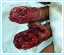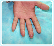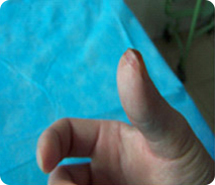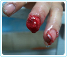手是人體的一個(gè)重要器官,具有高度發(fā)達(dá)的運(yùn)動(dòng)和感覺(jué)功能。手部解剖精細(xì)、結(jié)構(gòu)復(fù)雜、組織密集、相互交錯(cuò),共由27塊骨、19塊肌肉、17條肌腱以及眾多神經(jīng)、血管、腱鞘、滑囊等組織構(gòu)成。它們相互協(xié)同作用,完成比較復(fù)雜繁鎖的工作。隨著機(jī)械化程度的提高以及交通事故和生活上意外事故的上升,很容易造成手部損傷,尤其是手指的外傷非常常見(jiàn)。國(guó)外文獻(xiàn)報(bào)道,在急診創(chuàng)傷病例中,手外傷所占的比例在15%~28.6%在之間。特別是手指末節(jié)、指端損傷較常見(jiàn)。