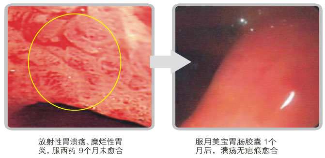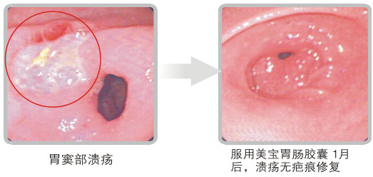 胃腸潰瘍是易復發(fā)難根治的疾病,其主要原因是:無論是自然愈合還是藥物治療,都是疤痕愈合,特別是藥物治療,其治療機理大多是設法讓潰瘍創(chuàng)面疤痕化封閉,盡早解除病人的創(chuàng)面病痛和危險。疤痕愈合后,雖然創(chuàng)面消失,但愈合的疤痕沒有黏膜的功能,無自我保護功能,隨時可被胃腸內食物或其他因素二次損傷,使疤痕愈合的創(chuàng)面重新發(fā)生糜爛、潰瘍。美寶胃腸黏膜再生復原技術的科學驗證證明,可在已經發(fā)生的胃腸潰瘍創(chuàng)面上,利用殘存的原位活組織細胞和干細胞,重新再生出新的胃腸黏膜,完全不同于藥物治療的疤痕愈合方式。由于潰瘍創(chuàng)面始終暴露在胃腸內容物的侵襲下,所以再生復原黏膜的首要條件就是始終隔離潰瘍創(chuàng)面不被內容物侵襲,建立黏膜再生的生態(tài)環(huán)境。同時在此環(huán)境下,促進細胞再生新的黏膜,取代潰瘍創(chuàng)面,恢復功能。臨床功效實驗證明,在藥物治療潰瘍的同時服用美寶胃腸膠囊(GIC),可使胃腸潰瘍創(chuàng)面無疤痕愈合,美寶胃腸膠囊是治療潰瘍藥物的最佳伴侶。方法是:不停止原有的藥物治療,每6小時服用5粒膠囊,伴藥服,也可單獨服,如服用30分鐘后癥狀未緩解,再及時增服5粒,如增服5粒后30分鐘仍不見好轉,可再增服5粒,直到癥狀消失,服用周期一般為一個月,較嚴重和面積較大的潰瘍創(chuàng)面可一直服用到創(chuàng)面愈合,不受時間限制。