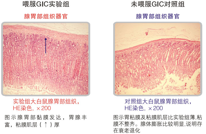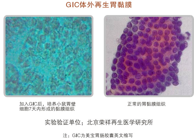 對(duì)10個(gè)月大的雄性大白鼠進(jìn)行526天的胃腸器官原位再生復(fù)原的實(shí)驗(yàn)證明:美寶胃腸再生復(fù)原技術(shù)可保障胃腸黏膜及相關(guān)腺體組織、平滑肌肌層旺盛的活力,未使用美寶胃腸再生復(fù)原技術(shù)對(duì)照組的實(shí)驗(yàn)結(jié)果是胃腸黏膜萎縮、老化明顯、腺體明顯減少、平滑肌層變薄。
