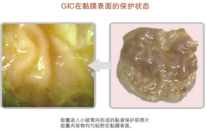 如果發(fā)生了損傷面,組合物與黏膜的高親和性使其能夠立即尋找并吸附在損傷面上,形成保護(hù)層,避免損傷面繼續(xù)受到損傷。通過上述的功效,本品不僅能夠保護(hù)胃腸黏膜不受損傷,還能夠保證人體維持正常的胃腸消化吸收功能。