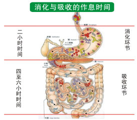 接下來講作息時(shí)間,簡單講,人在飯后食物的下行時(shí)間。人的胃開始排空時(shí)間是2小時(shí),所以6點(diǎn)吃飯,要8點(diǎn)胃排空后再睡覺,才會(huì)感覺舒服,要把胃排空的時(shí)間留出來,這些食物在小腸中再停留4—6小時(shí),在這個(gè)過程中吸收營養(yǎng)。這就是人為什么要一日三餐的原因,也正是為了人體不間斷的吸收營養(yǎng)。這樣胃腸道在一天中都沒有停下來,早飯后胃腸開始消化吸收,等消化完后就又開始吃午飯了,午飯消化吸收后又得吃晚飯,所以胃腸道一天都得工作,不能休息。因此我就提出人胃腸道的作息時(shí)間應(yīng)該是,白天時(shí)要少吃,讓胃腸略微休息休息,而且還能少牽涉人的精力。晚上睡覺時(shí)其他器官消耗能量少了,這時(shí)就可以多吃點(diǎn)兒,讓胃腸道多干干活,吸收好營養(yǎng)。這就是我們提出的早吃好、午吃少、晚吃飽的生物鐘飲食。吃什么大家都知道了,這個(gè)很簡單,但是從機(jī)理上講,吃的東西和細(xì)胞最后得到的營養(yǎng)的關(guān)系是比較復(fù)雜的。如吃了牛肉后,牛肉進(jìn)入胃后,牛肉中的少量蛋白質(zhì)就轉(zhuǎn)化成了氨基酸,但大多是都是在腸道轉(zhuǎn)化的;牛肉中的脂肪在胃中并沒有轉(zhuǎn)化,淀粉在胃內(nèi)也不消化,只不過是胃酸和胃的研磨,把粗的淀粉變細(xì)了,基本上各種食物在胃內(nèi)都能有一定的轉(zhuǎn)化。很多人認(rèn)為飯后人就會(huì)有勁兒,實(shí)際上并不是這樣的,剛剛飯后是最沒勁兒的時(shí)候,許多的心臟病等疾病都是在飯后發(fā)作的,這都是吃飯累的,人在吃飽飯后就會(huì)像爬山一樣累了。一旦食入食物,胃就會(huì)啟動(dòng),胃會(huì)根據(jù)攝入食物的不同會(huì)產(chǎn)生大量不同的消化液,比如人在喝了糖水之后,就會(huì)感覺胃酸,糖引起了大量胃酸的分泌。吃幾份不同的食物胃腸道也就會(huì)產(chǎn)生相應(yīng)的幾份消化液。因此建議大家在吃飯時(shí)一定要多樣化,食物過于單一,胃腸道就會(huì)失去相應(yīng)的功能。按照我們今天所講的再生養(yǎng)生標(biāo)準(zhǔn)吃就會(huì)達(dá)到多樣化飲食,蛋白質(zhì)、脂肪、維生素、礦物質(zhì)等全部都有了,消化液的分泌就會(huì)均衡。有些人減肥時(shí)光吃水果,結(jié)果肥是減了,但卻檢查出了癌癥,這就是因?yàn)槠錉I養(yǎng)不均衡,細(xì)胞得不到充足的營養(yǎng),餓出了癌。