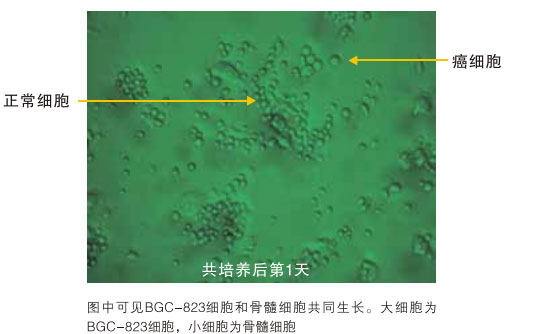 低濃度BGC-832(胃癌C)細胞與高濃度骨髓細胞的共培養(yǎng)結(jié)果