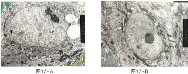我們這里說(shuō)的是成纖維細(xì)胞,不是成纖維母細(xì)胞(圖17-A)。母細(xì)胞在皮膚真皮里面時(shí)刻存在。隨著年齡的增長(zhǎng),母細(xì)胞、干細(xì)胞越來(lái)越少?,F(xiàn)在我們是要激活和啟動(dòng)它。就像在燒傷的表面如何長(zhǎng)出新的皮膚。駕馭它的生長(zhǎng),需要條件的配合。一個(gè)成纖維細(xì)胞,隨著衰老,出現(xiàn)空泡、空洞,細(xì)胞核分泌也不旺盛,細(xì)胞質(zhì)里的原膠原纖維雜亂無(wú)章。先說(shuō)細(xì)胞核,再生物質(zhì)被導(dǎo)入細(xì)胞后,細(xì)胞核膜變?yōu)橐?guī)整的,雖然它是衰老的,但經(jīng)過(guò)再生物質(zhì)的營(yíng)養(yǎng)強(qiáng)心,又有了能量。從原膠原纖維說(shuō),細(xì)胞質(zhì)里面的原膠原沒(méi)吐出來(lái)之前是雜亂無(wú)章的,經(jīng)過(guò)美寶再生物質(zhì)的導(dǎo)入,細(xì)胞吐出的膠原纖維就順了,這是細(xì)胞里面的狀況。導(dǎo)入再生物質(zhì)后成纖維細(xì)胞內(nèi)的變化(圖17-B),細(xì)胞內(nèi)纖維有序,細(xì)胞生長(zhǎng)旺盛。再生物質(zhì)導(dǎo)入之后,細(xì)胞的能量就增強(qiáng)了,代謝旺盛,自動(dòng)的調(diào)節(jié)纖維。因?yàn)槟z原纖維蛋白在原膠原時(shí)期是通過(guò)細(xì)胞里面的氨基酸、脂肪酸的代謝形成的。人體有8種必需氨基酸,膠原纖維蛋白就占據(jù)7種,同時(shí)還多了一般不代謝的羥脯氨酸。氨基酸代謝是細(xì)胞自身的能力,由于細(xì)胞的衰老,線粒體功能減弱,產(chǎn)生不了細(xì)胞合成和需要的ATP能量,合成的纖維就雜亂無(wú)章。而纖維合成完了,才集合起來(lái)組織輸出。所以說(shuō)一個(gè)衰老的膠原纖維細(xì)胞吐出的就是缺少粘性的絲。膠原蛋白絲是以膠原蛋白為主,但是絲和絲之間的連接是一種脂肪酸,這個(gè)脂肪酸必須是可溶性的,可代謝掉的,不會(huì)“鈣化”的。導(dǎo)入再生物質(zhì)之后,絲和絲之間馬上就連在一起成束。健康的細(xì)胞吐出來(lái)的才是束,不健康的細(xì)胞吐出來(lái)的只是絲。我們的發(fā)明是在燒傷上發(fā)現(xiàn)并研究出來(lái)的。我們用各種辦法把這種再生物質(zhì)導(dǎo)入皮膚,取出部分細(xì)胞分析,皮膚在變化,導(dǎo)入前和導(dǎo)入后完全不是一個(gè)樣。現(xiàn)在的器官再生復(fù)原也是一個(gè)道理,許多皺紋,導(dǎo)入再生物質(zhì)后,會(huì)變淺,甚至消失不再需要化妝。最終的目的呢,是要把不正常的細(xì)胞變?yōu)檎5募?xì)胞。從表面的感覺(jué)呢,就是把皮膚變成正常的束。可以說(shuō)皮膚厚度一般隨年齡增長(zhǎng)會(huì)越來(lái)越薄,而我們一定要讓皮膚變厚才真的到達(dá)效果。這個(gè)變厚試驗(yàn)已經(jīng)做出來(lái)了,下面就是某女士的臉,是我們的規(guī)范標(biāo)準(zhǔn)(圖18),