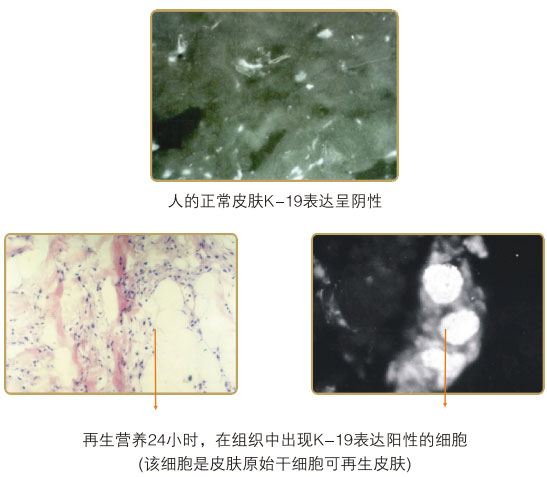 ● 再生營(yíng)養(yǎng)物質(zhì)被皮膚吸收后,再生營(yíng)養(yǎng)皮膚基底層及真皮組織的干細(xì)胞,恢復(fù)和再生復(fù)原其器官和組織的結(jié)構(gòu)和功能,保持表皮及真皮內(nèi)上皮組織、皮膚內(nèi)各器官旺盛的活力,預(yù)防和阻止皮膚衰老引起的色斑等異常皮膚疾患。附角蛋白19型干細(xì)胞研究圖片。