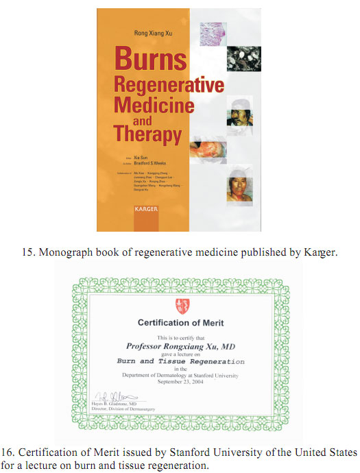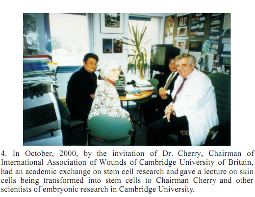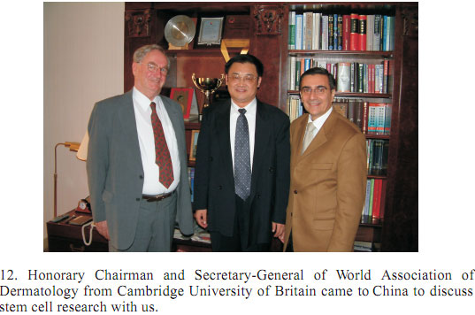 To emphasize its importance for scientific research all over the world, in the website of KARGER: "revolutionary and amazing"was commented.  As a result, this book evoked a worldwide repercussion; some famous life scientists from Germany, Britain, and the United States came to China to visit us on purpose for discussion about stem cell research.  Swedish National Television Station entrusted by Swedish National Committee of Sciences came to China especially for a visit.  Stanford University of United States invited me especially for the special subject lecture.  Some Professors of dermatology from Harvard University of the United States especially came to my home to discuss academic issues (some photos about academic communications in that time).