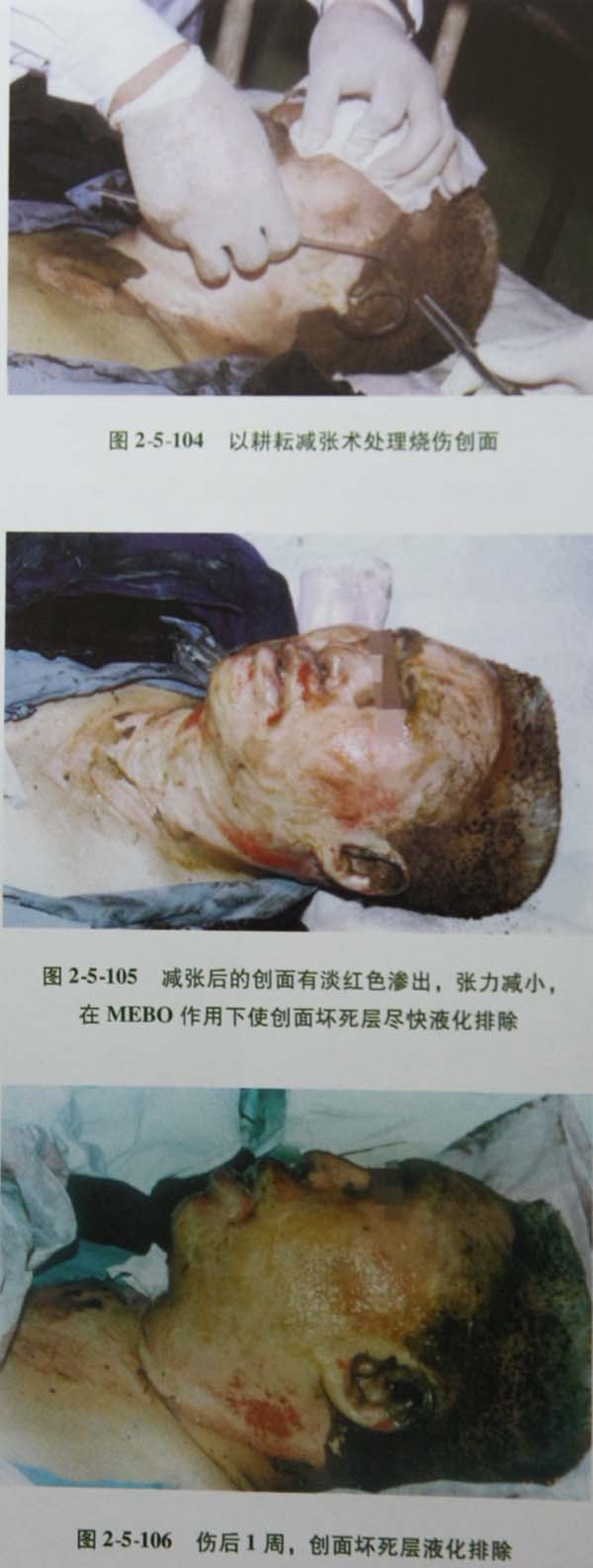(4)應(yīng)在傷后20天內(nèi)徹底清除壞死組織使創(chuàng)面新鮮再植皮,消除創(chuàng)面。