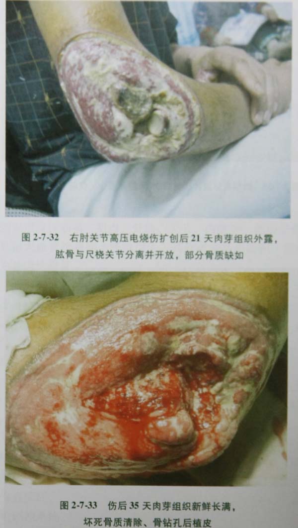 1四肢關(guān)節(jié)部位的嚴(yán)重?zé)齻?,不僅造成皮膚全層壞死,繼發(fā)局部壞死、加深,擴(kuò)大創(chuàng)面,常使骨、肌腱外露,給治療上增加一定難度,導(dǎo)致功能障礙。