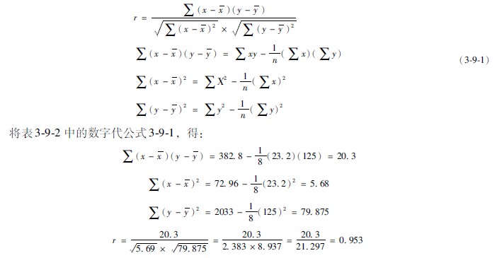 2列相關(guān)系數(shù)計(jì)算表(表392)