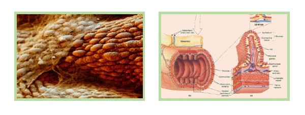 上右圖是腸粘膜絨毛的結(jié)構(gòu)示意圖,粘膜是由每一個(gè)絨毛器官(鋸齒狀的凸起)連接組成的,每一個(gè)絨毛獨(dú)立地行使吸收營養(yǎng)物質(zhì)的功能。