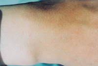 7. 深Ⅱ度、淺Ⅲ度混合度創(chuàng)面(右前臂及腕部屈側(cè))自行愈合后3年,皮膚結(jié)構(gòu)大部 分正常,部分色素缺失