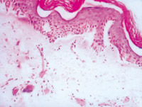 5-2-4 傷后第5天,真皮淺層組織液化性壞死、剝落  HE×100