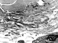 5-2-5 傷后第5天,膠原纖維相互融合,其間的細(xì)胞已崩解  TEM×6000