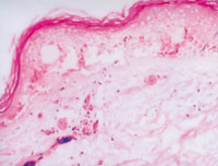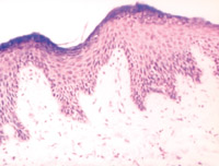 5-2-12 傷后第22天愈合,新生皮膚的結(jié)構(gòu)同正常皮膚  HE×100