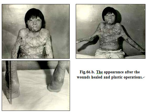 (1) Direct flame burns with 95 % TBSA, third-degree 90 %.