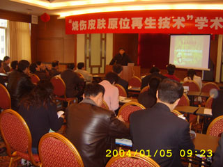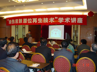 在授課期間,王洪生主任采用多媒體教學(xué)方式,利用大量詳實(shí)的臨床病例圖片資料,一是重點(diǎn)向與會(huì)的醫(yī)護(hù)人員展示了我國(guó)著名生命科學(xué)家,醫(yī)學(xué)家徐榮祥教授近年來在生命再生科學(xué)領(lǐng)域的研究新進(jìn)展及所取得的重大實(shí)驗(yàn)和臨床研究成果;并通報(bào)了徐榮祥教授在生命科學(xué)研究領(lǐng)域于2005年12月6日在美國(guó)獲得的三大發(fā)明專利;二是重點(diǎn)講述了燒傷皮膚原位再生醫(yī)療技術(shù)在燒傷臨床中的規(guī)范化應(yīng)用;三是重點(diǎn)講述了燒傷皮膚再生醫(yī)療技術(shù)在多學(xué)科的臨床應(yīng)用。