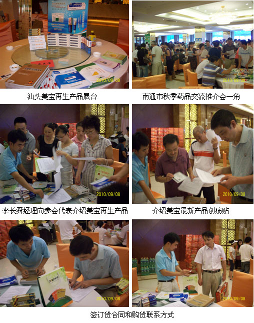 2010年9月8日,南通市秋季藥品展銷(xiāo)交流推介會(huì)在南通市水天堂大酒店拉開(kāi)了帷幕,參加本次會(huì)議的廠(chǎng)家及藥業(yè)公司有200余家,其中汕頭美寶制藥有限公司住南通市辦事處工作人員也參加了本次推介會(huì),在會(huì)議結(jié)束前,訂貨美寶濕潤(rùn)燒傷膏2件、20g曲咪新5件、創(chuàng)瘍貼50貼。藥品展銷(xiāo)交流推介會(huì)期間,汕頭美寶制藥有限公司李長(zhǎng)舜經(jīng)理和專(zhuān)家組杜福勤主任深入展臺(tái)前與客戶(hù)代表親切交談,詳細(xì)地介紹人體再生復(fù)原科學(xué)、再生醫(yī)療技術(shù)系列產(chǎn)品、臨床滿(mǎn)意療效等,傾聽(tīng)客戶(hù)代表的意見(jiàn)與建議,商談進(jìn)一步合作事宜,并協(xié)調(diào)解決客戶(hù)的困難與終端關(guān)系。會(huì)議超過(guò)預(yù)期效果,取得圓滿(mǎn)成功。