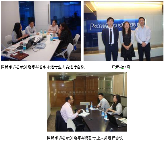 關(guān)于公司組建與運(yùn)營的具體事宜,國際市場總部總裁孫霞、國際市場總監(jiān)劉鋼、印度市場經(jīng)理兼醫(yī)學(xué)技術(shù)支持專員張印一行三人前往新德里衛(wèi)星城市Gurgaon,這里是新型城市和開發(fā)區(qū),是眾多國際企業(yè)云集所在。美寶代表團(tuán)分別與普華永道國際會計(jì)公司(世界排名第一)與德勤國際會計(jì)公司(世界排名第三)進(jìn)行了深入的交流與會談。國際市場總部總裁孫霞,就印度外資投資政策、醫(yī)藥行業(yè)的特殊要求、公司組建細(xì)節(jié)與程序、公司運(yùn)營、稅務(wù)、審計(jì)等與這兩家世界知名會計(jì)公司專業(yè)人員進(jìn)行了非常詳細(xì)地討論,并初步確定了美寶印度分公司的組建與運(yùn)營初步計(jì)劃。