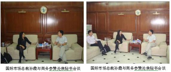 應(yīng)中華人民共和國駐印度大使館商務(wù)參贊處侯秘書邀請,國際市場總部總裁孫霞、市場總監(jiān)劉鋼、印度市場經(jīng)理兼醫(yī)學(xué)技術(shù)支持專員張印參觀訪問了中國駐印度大使館商務(wù)參贊處,并受到了熱情的歡迎與接待。關(guān)于印度投資情況、印度醫(yī)藥市場、中國企業(yè)在印度投資的情況等問題,國際市場總裁孫霞與侯秘書進(jìn)行了深入的交流與討論。侯秘書指出,美寶國際集團(tuán)作為醫(yī)藥公司準(zhǔn)備在印度投資,可謂是國內(nèi)醫(yī)藥企業(yè)的先行者與帶頭人,印度條件較差,情況復(fù)雜,希望企業(yè)做好充分的思想準(zhǔn)備,印度使館是中國企業(yè)的重要后盾,將盡可能為所有中國企業(yè)提供幫助和交流平臺。