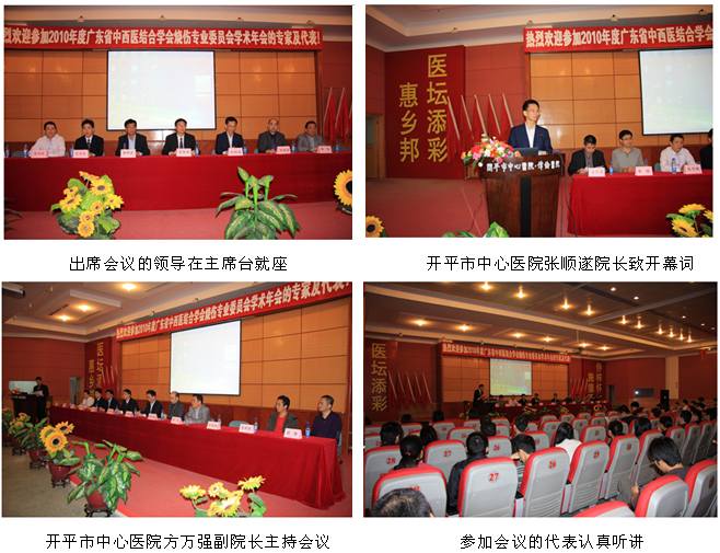 2010年12月4日~5日,由廣東省中西醫(yī)結(jié)合學(xué)會燒傷專業(yè)委員會主辦、廣東省開平市中心醫(yī)院協(xié)辦的2010年廣東省繼續(xù)醫(yī)學(xué)教育項目“再生技術(shù)規(guī)范化治療難治性創(chuàng)面新進展培訓(xùn)班”暨2010年廣東省中西醫(yī)結(jié)合燒傷創(chuàng)瘍學(xué)術(shù)年會在美麗的著名僑鄉(xiāng)——開平市舉行。
