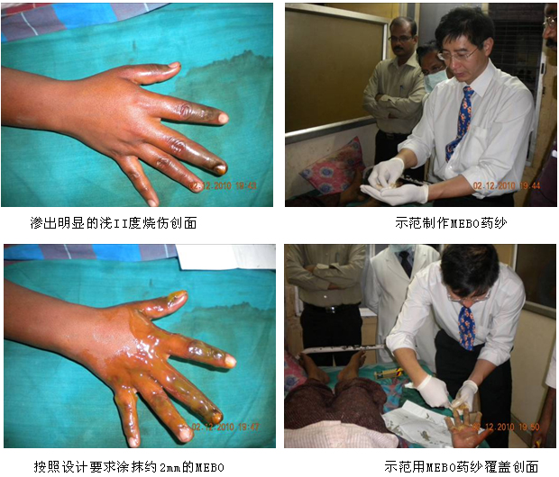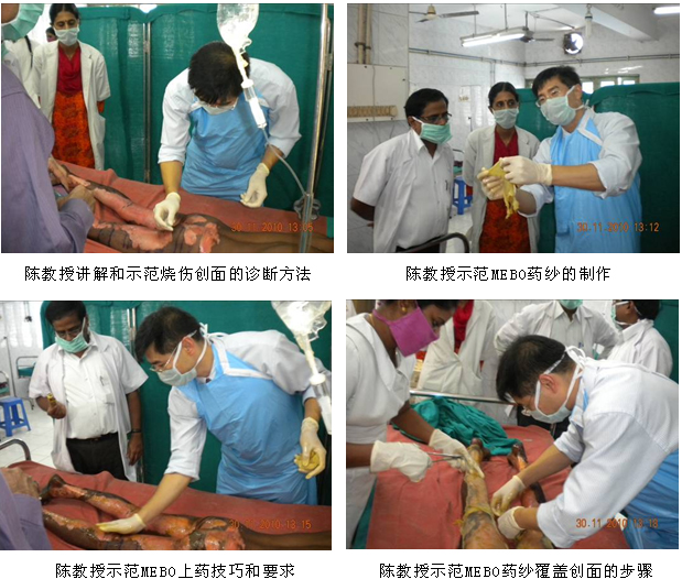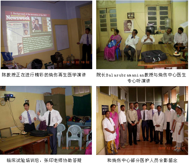 隨著徐榮祥教授發(fā)明的燒傷再生醫(yī)學在國際上的影響力和知名度的擴大,越來越多的國家希望早日引進再生醫(yī)學技術(shù)和配套產(chǎn)品-----美寶濕潤燒傷膏(MEBO),印度便是其中之一。為了盡快引進MEBO,經(jīng)印度藥監(jiān)局(DCGI)的批準,MEBO在印度的III期臨床試驗于2010年7月正式啟動并在各級醫(yī)院逐步展開。為了保證臨床試驗的安全、順利進行和對新增加的2家大型政府醫(yī)院的燒傷中心的參研人員進行培訓,同時也是應印度燒傷整形外科學會主席、欽奈醫(yī)學院附屬醫(yī)院燒傷中心主任Jayaraman教授的邀請,2010年年末,中國燒傷創(chuàng)瘍科技中心臨床部主任、北京榮祥再生醫(yī)學研究所副所長陳永翀教授和技術(shù)支持專員張印來到了Chennai市醫(yī)學院附屬醫(yī)院(KMC)和Madurai市醫(yī)科大學附屬醫(yī)院,向臨床醫(yī)護人員介紹了燒傷再生醫(yī)學研究應用新進展,對參與臨床試驗的人員進行了培訓,并指導臨床試驗工作等。再生醫(yī)學的先進性、實用性、有效性和便于掌握等,很受印度臨床醫(yī)師的歡迎,目前臨床試驗正在有序進行,并取得了初步的成功?,F(xiàn)給讀者做一個簡短的介紹: