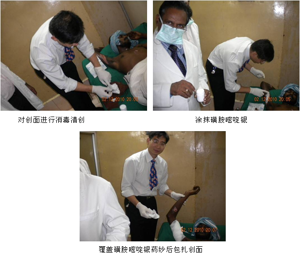 B、對照組(磺胺嘧啶銀組)病例創(chuàng)面的處理操作示范: