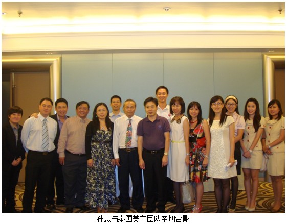 9月13日上午,孫總一行應(yīng)泰國DKSH公司高層邀請來前往拜訪,聽取DKSH公司市場總監(jiān)Ms.Kasinca關(guān)于泰國美寶的市場規(guī)劃。DKSH公司MC和OTC團隊產(chǎn)品經(jīng)理Mr.Boonlert和Mr.Tanut分別介紹了2011年截至目前美寶泰國的市場計劃執(zhí)行情況及2012的市場發(fā)展計劃。 針對對方提出的目標和計劃,孫總提出了寶貴的意見和建議,并強調(diào)后續(xù)的工作雙方團隊務(wù)必更加緊密合作,切實有效地執(zhí)行落實各項計劃。