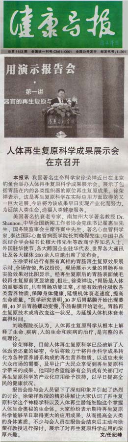 健康導(dǎo)報:人體再生復(fù)原科學(xué)成果展示會在京召開