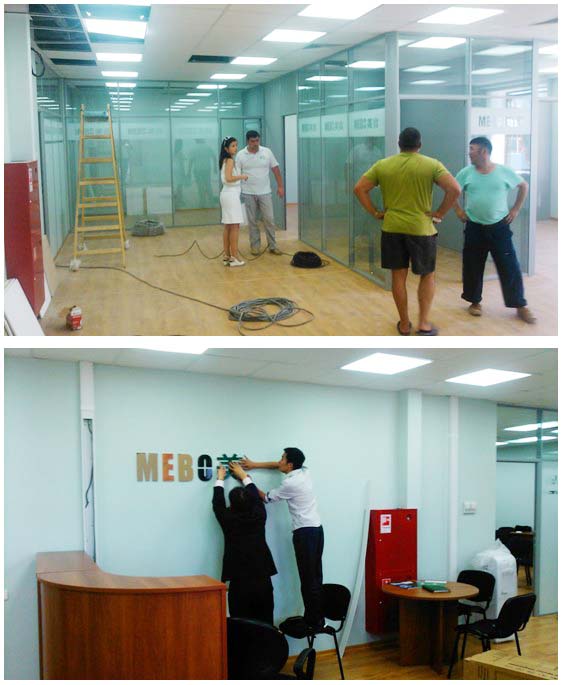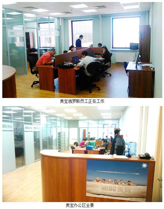 美寶俄羅斯分公司坐落在格林伍德國(guó)貿(mào)中心的核心區(qū)——17號(hào)商務(wù)辦公樓,租用建筑面積203平米,根據(jù)業(yè)務(wù)需求內(nèi)部布局分為接待溝通區(qū)、公共辦公區(qū)、會(huì)議培訓(xùn)區(qū)、經(jīng)理室、財(cái)務(wù)室、周轉(zhuǎn)庫(kù)等幾部分。分公司籌備組迅速開展各項(xiàng)準(zhǔn)備工作,落實(shí)公司注冊(cè)、招聘培訓(xùn)本地員工,按項(xiàng)目進(jìn)度完成了從設(shè)計(jì)裝修、家具采購(gòu)、到布線安裝、設(shè)備調(diào)試等一系列營(yíng)運(yùn)準(zhǔn)備工作,大家親自動(dòng)手布置裝飾辦公室,即節(jié)省了費(fèi)用又促進(jìn)了溝通,將美寶再生復(fù)原科學(xué)的旗幟插到了莫斯科。