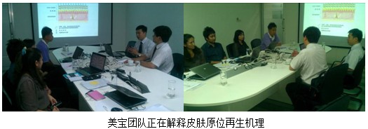 6月18日上午9點,美寶團隊一行來到當?shù)睾献骰锇镈KSH總部,為4名高層人員介紹再生醫(yī)療技術皮膚原位再生機理。仔細的講解和PPT的內容讓四名新上任的高層對美寶科學機理有了大致了解,他們紛紛點頭表示會繼續(xù)潛心研讀相關再生科學論文和著作,為再生技術在泰國的普及做好基礎。