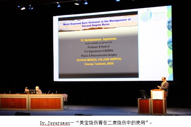 緊跟著上臺的是來自印度南部最大燒傷中心的主任Prof.Jayraman做的題為“再生醫(yī)療技術(shù)在II度燒傷創(chuàng)面治療”的精彩演講。演講過程中Jayaraman主任總結(jié)了此項技術(shù)的極大優(yōu)勢例如保持創(chuàng)面濕潤環(huán)境,抗炎抗感染以及痛苦小等等優(yōu)點。同時也展示再生醫(yī)療技術(shù)在印度臨床試驗過程收集的多個病例,特別需要指出的是,Jayraman 主任對美寶的再生機理給予了詳細(xì)的解釋,從潛能再生細(xì)胞到干細(xì)胞,從再生環(huán)境到再生技術(shù),給與會專家又一全面的美寶科學(xué)的展示。