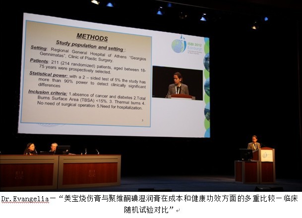 最后壓軸出場的是來自希臘的燒傷治療專家Dr.Evangelia Tsati,她以“Comparing cost and multiple health outcomes between oil baded ointment and povidone iodine plaus moisturizing cream under different aspects: A pragmatic Randdomized Trial”為題介紹自己參與的在希臘進(jìn)行的多中心臨床對比試驗,演講包含了大量的對比數(shù)據(jù)和科學(xué)論證,從治愈時間、治療便捷性、病人痛苦程度、治療費用等多個方面進(jìn)行了詳細(xì)的對比闡述,結(jié)果顯示美寶在病人愈合時間、住院時間以及整體花費上全部優(yōu)于對照組!由于時間問題,她沒法答疑,但是會后作為唯一的女性演講者,她獲得了所有專題會聽眾最高的評價—“科學(xué)和完美的演講”!