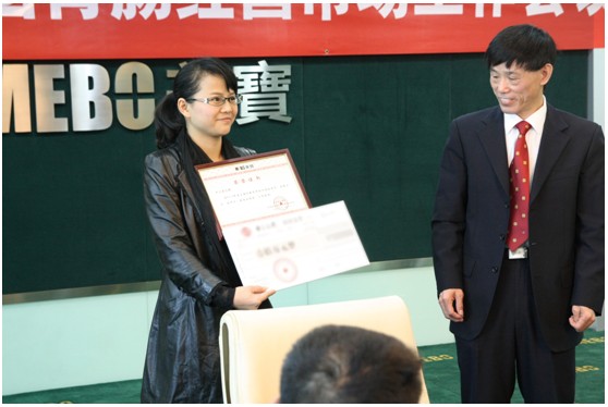 上午會議一項重要議程是給在2012年經(jīng)營中取得突出成績的省區(qū)代表頒發(fā)獎狀、獎金和獎品,當獲得“最佳業(yè)績獎”的四川總經(jīng)理羅天銘、獲得“最佳新秀獎”的黑龍江總經(jīng)理楊中端、獲得“最佳進步獎”的湖南總經(jīng)理龔光春,從陳寶琪總裁手中接過榮譽時,全場響起了祝賀的掌聲和贊許聲。