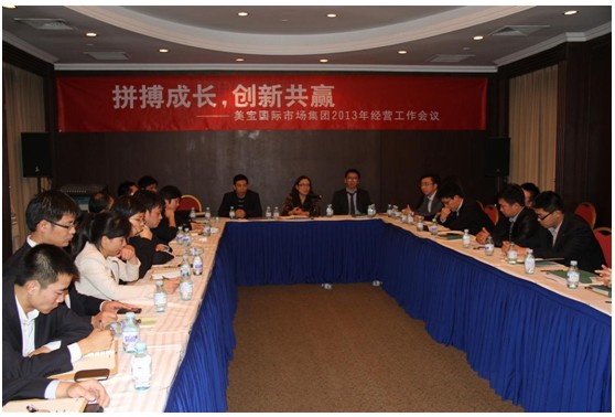 歲月荏苒,烏飛兔走, 波濤起伏,波瀾壯闊的2012即將離去,美寶國際市場集團迎來了的2013年的經營工作會議。 2013年的1月5日至7日,冒著嚴寒,滿懷熱情,美寶國際集團領導班子攜全體員工并連線派駐在俄羅斯的同仁召開了一年一度的經營工作會議!