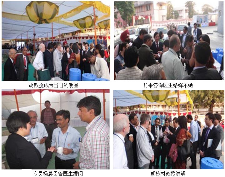 隨后,在張印的帶領(lǐng)下,美寶團(tuán)隊將的具有特殊意義的禮物-贈送給了ISBI秘書長Rajeev Ahuja教授和大會主席Umesh Sha教授,他們被這份友誼深深的感動了。ISBI秘書長激動的說:“你們今天的演講很精彩,但是你們講力度太小了。讓我講,這項技術(shù)在全世界都會火起來的?!焙淌谡f:“這項技術(shù)是造福全人類的技術(shù),希望ISBI組織能夠大力推廣,為全人類燒傷患者造福?!庇《葻齻麑W(xué)會主席Umesh Shah 教授緊握著美寶團(tuán)隊成員的手說:“你們太細(xì)心,太讓我感動了, 我有機(jī)會一定去北京拜訪你們,并向你們學(xué)習(xí)” 期間,下一屆印度燒傷學(xué)會主席亞洲最大燒傷中心Safdarjang 燒傷中心主任R.P.Narayan教授前來對胡教授的演講給予高度贊揚(yáng)并邀請美寶團(tuán)隊2014年來新德里參加22屆印度國家燒傷年會,并將全力配合美寶團(tuán)隊的工作。