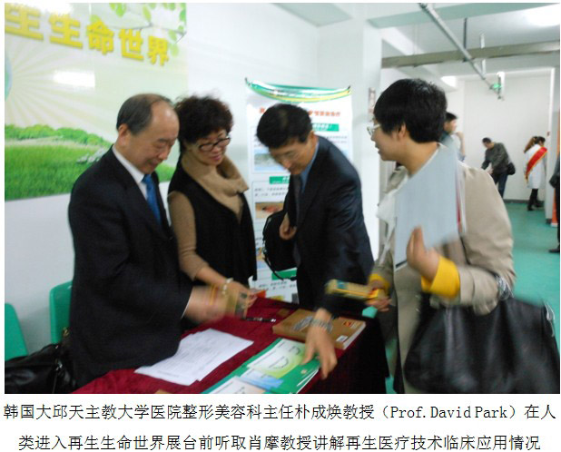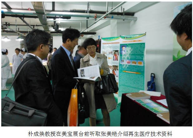 配合會議主題學(xué)術(shù)報告,北京片區(qū)專門在報告廳的門口布置了人類進(jìn)入再生生命世界主題展臺,為參會的臨床醫(yī)生提供了專家咨詢交流的平臺,并贈閱學(xué)習(xí)資料,大家對《中國燒傷創(chuàng)瘍雜志》、《燒傷皮膚再生醫(yī)療技術(shù)臨床手冊》、《再生醫(yī)療技術(shù)臨床應(yīng)用指導(dǎo)叢書》(褥瘡、糖尿病足、肛腸疾病、皮膚病、難愈創(chuàng)面等分冊),受到參會醫(yī)生的歡迎,韓國的樸成煥教授饒有興趣的到展臺前進(jìn)行咨詢,他認(rèn)真聽取肖摩教授講解再生醫(yī)療技術(shù)臨床應(yīng)用規(guī)范和療效的情況之后,感嘆美寶的神奇療效,要結(jié)合整形美容專業(yè)應(yīng)用于臨床。