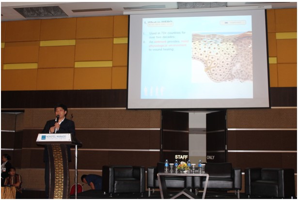 再生醫(yī)學(xué)相關(guān)的演講成為今日會議議程的主題,無論是在主題演講全體大會,還是在分會場,都有再生醫(yī)學(xué)專家的身影及精彩展示,再生醫(yī)學(xué)和美寶已成為會場上的熱門話題,引起參會人員極大的興趣??芍^在此會場上獨(dú)領(lǐng)風(fēng)騷!通過與印尼醫(yī)生及護(hù)士的交流,我們了解到,印尼很多地區(qū)經(jīng)濟(jì)落后,藥物供應(yīng)不足,急需像再生療法和美寶膏這樣能止痛,抑菌,再生,易操作,性價比高的藥物和療法,他們希望可以盡快學(xué)習(xí)此項(xiàng)技術(shù),造福印尼眾生!