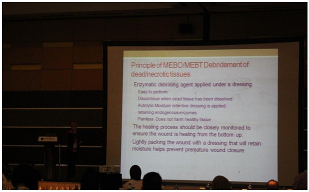 6月7日,大會演講繼續(xù)進行。來自馬來西亞的再生醫(yī)學(xué)專家Hospital of Kuala Lumpur婦產(chǎn)科主任Dr. Noor Halizah Yossulf,作為主題發(fā)言人之一在全體大會上介紹了再生療法在婦產(chǎn)科方面的應(yīng)用。她的演講從4年前接觸再生醫(yī)學(xué)開始,經(jīng)過兩年的不斷了解和試用,她于2011年正式開始應(yīng)用再生醫(yī)療技術(shù)。經(jīng)過兩年的臨床實踐,她將再生醫(yī)療技術(shù)主要應(yīng)用各種產(chǎn)科手術(shù)切口病例,包括剖腹產(chǎn)術(shù)后手術(shù)切口裂開并長期難愈的病例,會陰側(cè)切病例等;此外,她也把再生技術(shù)應(yīng)用在難愈性創(chuàng)面如糖尿病潰瘍、褥瘡等。多達20例臨床真實、詳盡、完整的病例的現(xiàn)場展示,引起了與會人員強烈的反響。茶歇期間,很多醫(yī)生圍擁著Dr. Halizah,咨詢各種應(yīng)用問題,并請求分享相關(guān)的美寶研究文獻。Dr. Halizah熱情耐心地講解,并將很多醫(yī)生介紹到再生醫(yī)學(xué)的展臺進一步深入了解再生醫(yī)療技術(shù)。
