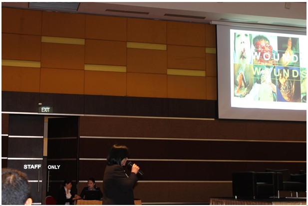 隨后,來自菲律賓的再生醫(yī)學(xué)專家Dr. Mirela則從再生醫(yī)學(xué)的發(fā)明,技術(shù),成份,初步解除到廣泛應(yīng)用方面等方面做了系統(tǒng)詳盡的介紹。Dr. Mirela是菲律賓南部重鎮(zhèn)Cebu的知名燒傷整形教授,其學(xué)生遍布菲律賓南部大小醫(yī)院。她現(xiàn)在擔(dān)任Cebu City Medical Center, Sacred Heart Hospital以及Southwestern University –MHAM College of Medicine三家醫(yī)院的外科主任。她早在2011年5月曾來過中國深入學(xué)習(xí)再生醫(yī)療技術(shù)。學(xué)習(xí)完畢后,她便開始在她供職的醫(yī)院及科室全面應(yīng)用再生醫(yī)療技術(shù)。她重點介紹了再生醫(yī)療技術(shù)的發(fā)展史、美寶燒傷膏作用機理以及大量應(yīng)用再生醫(yī)療技術(shù)在不同創(chuàng)面的臨床病例,讓觀眾們對再生醫(yī)療技術(shù)有了更系統(tǒng)全面的認識。