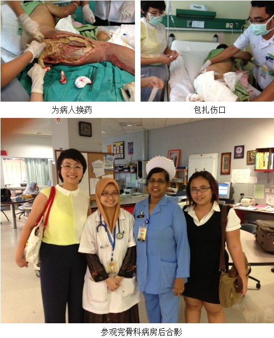 繼續(xù)教育項(xiàng)目開始前,我們拜訪了馬來國(guó)大醫(yī)院((Hospital Universiti Kebangsaan Malaysia)燒傷科主任Dr. Farrah及護(hù)士長(zhǎng),參觀了燒傷科病房,了解了醫(yī)務(wù)人員的學(xué)習(xí)需求,時(shí)逢Dr. Farrah 有一外科病人需要會(huì)診,該病人72歲,女,頭頂部有一腫瘤,切除四天,病理結(jié)果仍需2個(gè)星期,會(huì)診后,決定讓病人使用再生療法,因?yàn)槊缹殶齻嗖皇窃撫t(yī)院的基藥,醫(yī)生不能直接開處方,只能病人自己買了拿來?yè)Q藥,因此,張美艷及Noliza在科室等了病人家屬2個(gè)半小時(shí),成功介紹病人使用美寶燒傷膏!并計(jì)劃跟蹤隨訪該案例!