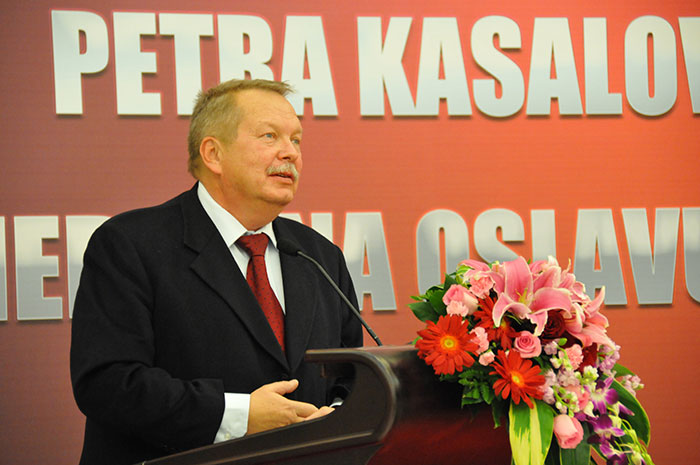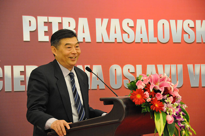 此次盛宴的主角歐洲IEF經(jīng)濟(jì)俱樂部主席Dr. Peter Kasalovsky先生,94年曾經(jīng)蒞臨中國(guó),與鐵映首長(zhǎng)有過親切交談,那時(shí)初識(shí)中國(guó),而此次中國(guó)之行,更是震驚于中國(guó)經(jīng)濟(jì)、中國(guó)國(guó)力的深刻變化,而對(duì)于自己能夠?qū)⑿鞓s祥之成果更快的推進(jìn)歐洲乃至世界深感欣慰,他深深的意識(shí)到,2013年 “Golden  Biatec”獎(jiǎng)獲得者的全球選拔并授予,價(jià)值非凡,意義巨大,有可能成為IEF歷史上最輝煌的記錄,因?yàn)樯膬r(jià)值,人類的健康永遠(yuǎn)是不可逾越的最珍貴的貢獻(xiàn)。他說:“徐教授是‘ Golden Biatec’全球2013年獲得者,徐榮祥獲獎(jiǎng)對(duì)于歐洲更好的了解該項(xiàng)成果非常有幫助,通過徐先生獲得此獎(jiǎng),能使歐洲乃至世界各國(guó)更深刻的了解徐先生所取得的驕人成果,就像我們今天親身感受所了解到的中國(guó)那樣,使他們也能夠感受到中國(guó)所經(jīng)歷的巨大變化、迅速的發(fā)展,以及對(duì)全世界越來越多的影響力。世界需要更好地了解中國(guó),我要告訴世界,世界最重要的城市不僅僅是紐約、巴黎,還有北京,我要扭轉(zhuǎn)歐洲乃至世界人民對(duì)中國(guó)的認(rèn)知,中國(guó)不僅在經(jīng)濟(jì)、文化、特別是醫(yī)學(xué)領(lǐng)域走在了世界的前列,作為IEF成員,衷心祝愿中國(guó)取得更的大成就,也祝愿徐榮祥和他得團(tuán)隊(duì)不斷取得更大的成就。”