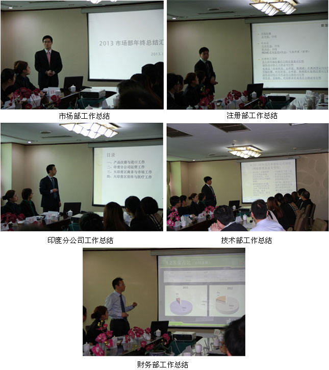 上午的會議主題為2013年總結,國際市場集團各部門負責人由吳云、張印、陳剛、舒葉、肖舸、樂盛華、劉林、張京艷分別就各自所轄部門2013年的工作總結進行了詳細地匯報,總結了2013年取得剖析工作中存在的不足,提出了基本的工作改進思路。隨后,孫總就各部門的工作總結分別針對性地進行了精準地點評,一方面肯定了國際市場集團在面臨2013國際市場遇到的多項客觀阻力的前提下所取得的成績,特別是在整體銷售回款目標任務完成;另一方面針對各部門工作存在的不足,包括各市場終端活動掌握的匱乏,分公司工作進度緩慢及經營模式無突破等方面,一陣見血地提出了批評并分別做出了明確的改進要求。