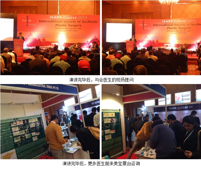演講后,參會專家踴躍地向舒葉提出了各種問題,他們詢問美寶的神奇之處、在全球的發(fā)展狀況、以及目前印度美寶的發(fā)展情況。在中午的短暫休息中,各路專家都涌到美寶展臺了解更多的信息和索取相關(guān)宣傳資料。有一位來自土耳其的整形外科醫(yī)生告訴筆者,他曾經(jīng)用過美寶很多年,效果非常不錯,沒想到在印度也能買到;有一位印度當?shù)氐呐哉瓮饪漆t(yī)生在看到演講中病例的皮膚還童效果后,追問哪里可以買到美寶的產(chǎn)品。更多的醫(yī)生強烈表達了會后一定讓印度辦公室的當?shù)厝藛T與他們?nèi)〉寐?lián)系,展開后續(xù)的技術(shù)合作。