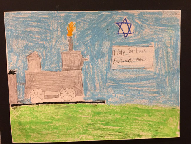 在RxX工作人員的協(xié)助下,專(zhuān)業(yè)攝制團(tuán)隊(duì)已提前錄制好猶太長(zhǎng)者們生平故事的訪(fǎng)談視頻。12月3日活動(dòng)當(dāng)天,洛杉磯猶太社區(qū)周日學(xué)校部分學(xué)前班到七年級(jí)的學(xué)生們首先觀(guān)看了訪(fǎng)談視頻,然后將對(duì)視頻中故事的感悟用畫(huà)作呈現(xiàn)出來(lái)。
