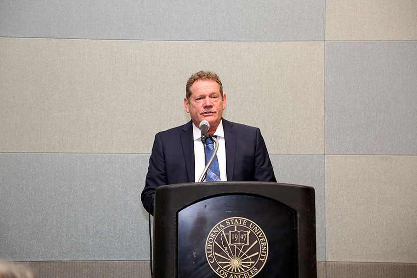 徐榮祥健康與公共事業(yè)服務學院校長榮·沃格爾介紹了徐榮祥健康與公共事業(yè)服務學院在美國院校中的卓越表現(xiàn),表示基于相同的理念及共同為人類需求努力的目標將展開更多的合作。并堅信,在徐榮祥基金會、李俐及徐鵬的支持下洛杉磯州大一定會變得更好。