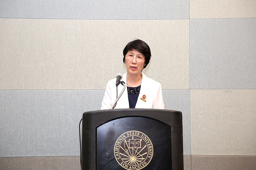 洛杉磯州大副校長珍妮特·戴爾代表州大校長對來到洛杉磯州大的各界朋友表示歡迎,并表示傳承徐大夫的名字是洛杉磯州大的榮耀。