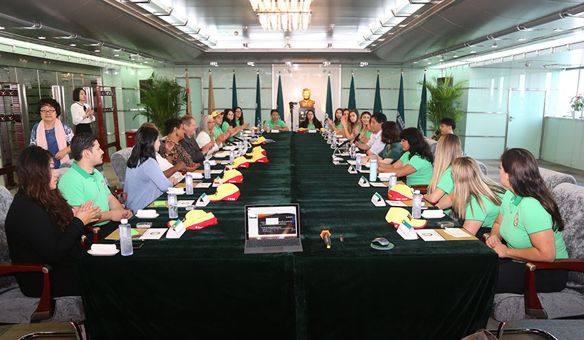 徐榮祥基金會(huì)主席、美寶集團(tuán)董事局副主席李俐接見了師生團(tuán)一行。李俐代表基金會(huì)、代表美寶集團(tuán)對(duì)訪問團(tuán)所有成員表示了熱烈的歡迎。她說,你們是徐榮祥健康與公眾服務(wù)學(xué)院第一批學(xué)習(xí)交流者,希望你們做好此行的傳播者,更做好徐榮祥技術(shù)的傳播者。希望未來徐榮祥健康與公眾服務(wù)學(xué)院的學(xué)生不斷來到中國(guó)學(xué)習(xí)交流,彼此有更好更多更深入的合作。李俐轉(zhuǎn)達(dá)了董事局主席徐鵬的問候,并希望大家記住徐榮祥,記住這個(gè)將大家連接在一起的名字。美寶集團(tuán)副總裁陳寶琪主持了此次接見儀式。