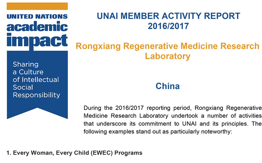 “ 聯(lián)合國學術(shù)影響”成員報告北京榮祥再生醫(yī)學研究所相關(guān)展示內(nèi)容如下: