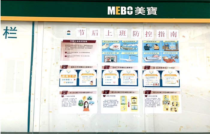復(fù)工前,為全力做好新型冠狀病毒肺炎預(yù)防、控制工作,遏制疫情擴(kuò)散,確保全體員工的身體健康和生命安全,汕頭市美寶提前做好了各項(xiàng)疫情防護(hù)宣傳工作,疫情防控科普知識(shí)的宣傳板及樓內(nèi)各區(qū)域警示宣傳隨處可見;并提前購(gòu)買洗手消毒液、配置75%酒精和次氯酸鈉溶液地面消費(fèi)水、體溫槍、消毒碗柜和一次性醫(yī)用手套等防護(hù)等物資;門口安保也嚴(yán)陣以待,員工統(tǒng)一佩戴口罩,入廠時(shí)逐個(gè)接受體溫檢測(cè)和噴手消毒。