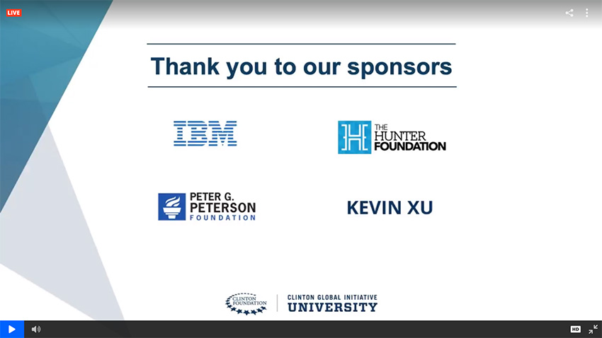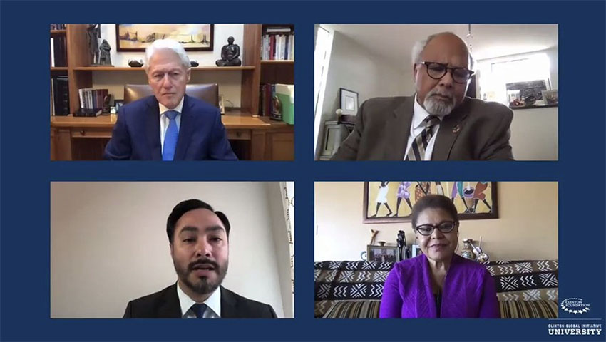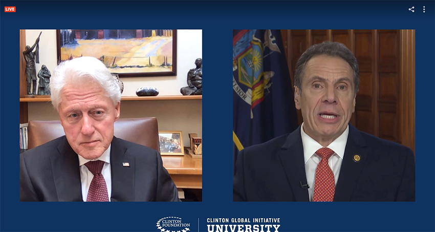 2020年美東時(shí)間4月18日中午12點(diǎn),克林頓全球倡議大學(xué)(CGIU)虛擬年會(huì)召開(kāi)。眾多來(lái)自政府機(jī)構(gòu)、非政府組織、知名企業(yè)的領(lǐng)導(dǎo)者及特定議題的專(zhuān)家學(xué)者和知名院校的學(xué)生領(lǐng)袖、院校代表在線參加了此次年會(huì)。