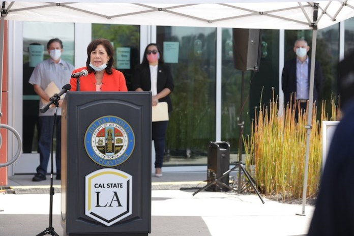 5月9日,一個(gè)新的新冠肺炎免費(fèi)檢測點(diǎn)在加州州立大學(xué)洛杉磯分校徐榮祥生物科學(xué)創(chuàng)新中心(Rongxiang Xu Bioscience Innovation Center)正式啟動(dòng),徐榮祥生物科學(xué)創(chuàng)新中心將在新冠肺炎大流行中發(fā)揮重要作用,為當(dāng)?shù)厣鐓^(qū)提供安全、準(zhǔn)確的COVID-19檢測,幫助阻止病毒的傳播。該站點(diǎn)由洛杉磯州大與洛杉磯郡政府以及加州州長辦公室合作設(shè)立。
